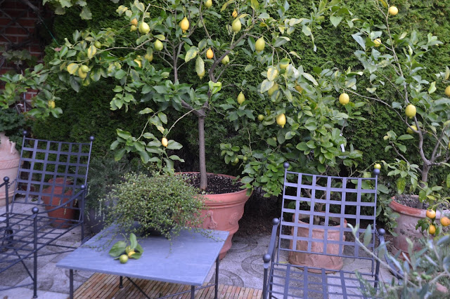 Vi satt i värdparets fina orangeri omgivna av fantastiska medelhavsväxter, eller vad sägs om ett jätteolivträd, citronträd med många citroner, granatäpple, nerium och myrten. En och annan kruka skymtades också. Hehehe.....